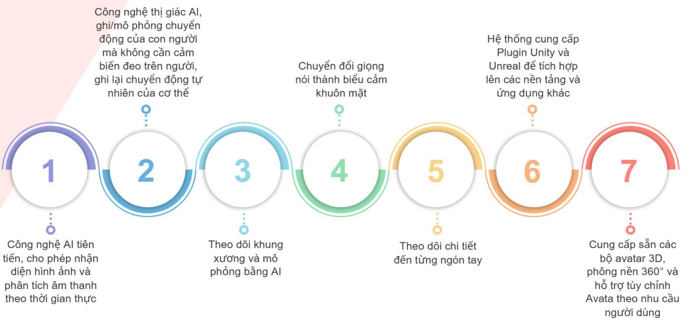 Sản phẩm phát triển dựa trên công nghệ thị giác, người dùng chỉ cần kết nối camera với ứng dụng (không cần thêm các thiết bị cảm biến khác như công nghệ thuông thường), hệ thống sẽ tạo ra Avata 3D nhanh chóng, dễ dàng. Đây là điểm nổi trội của hệ thống khi áp dụng AI vào xây dựng sản phẩm.